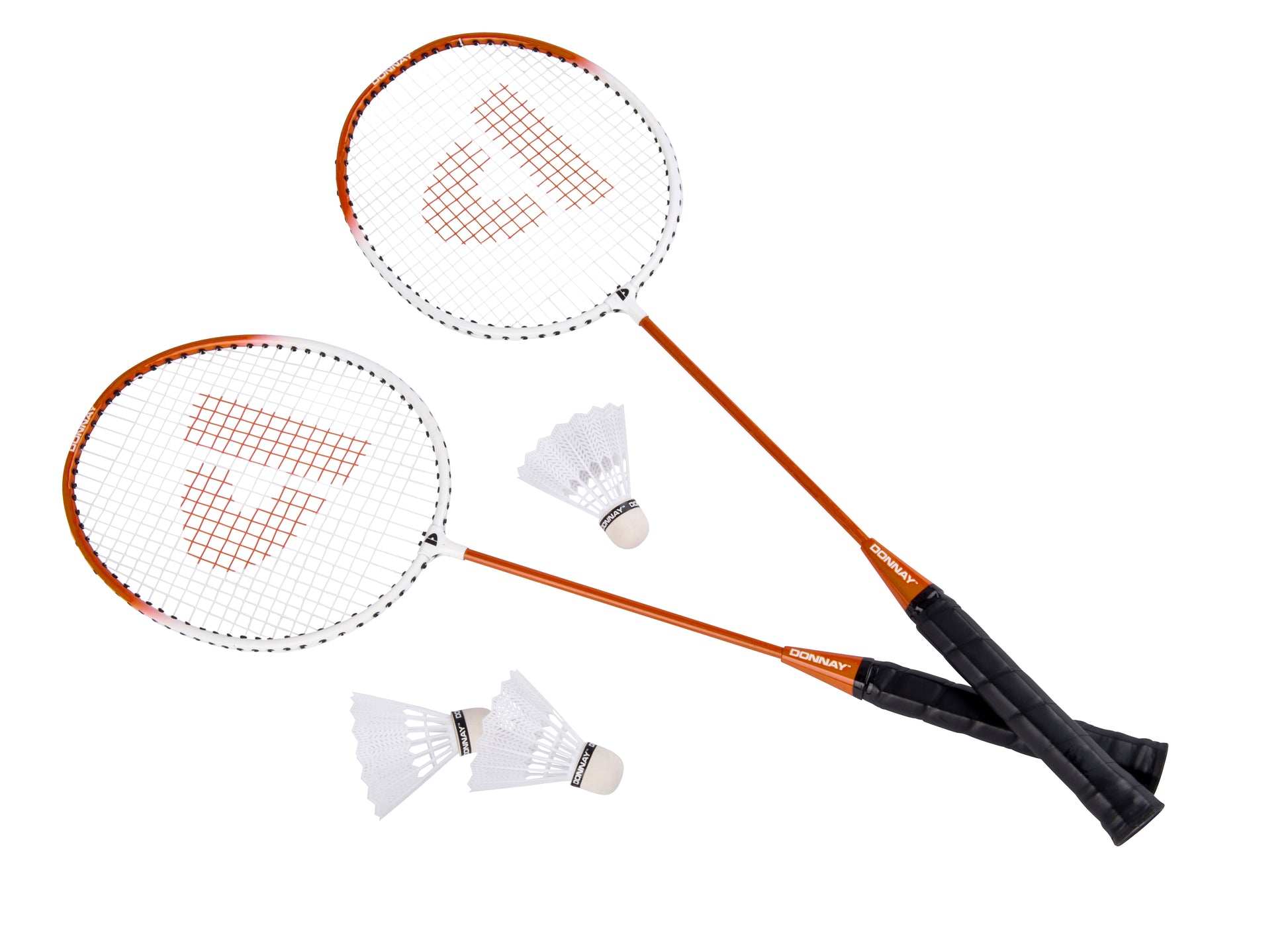 Komplettes Badmintonset mit zwei Schlägern und drei Federbällen. Mit praktischer Tragetasche für leichten Transport.