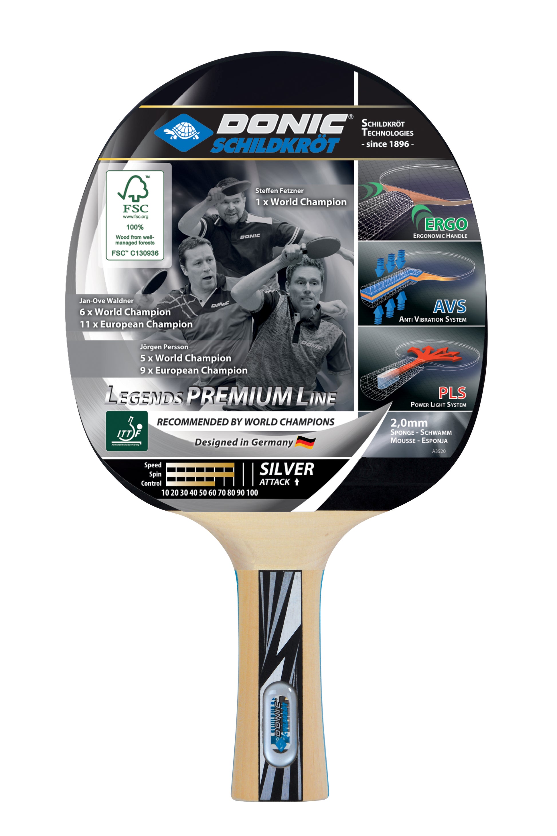 Donic Schildkröt table tennis bat Legends Silver, Premium Line including cover
