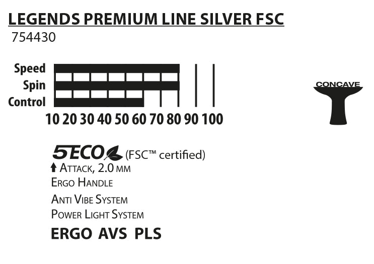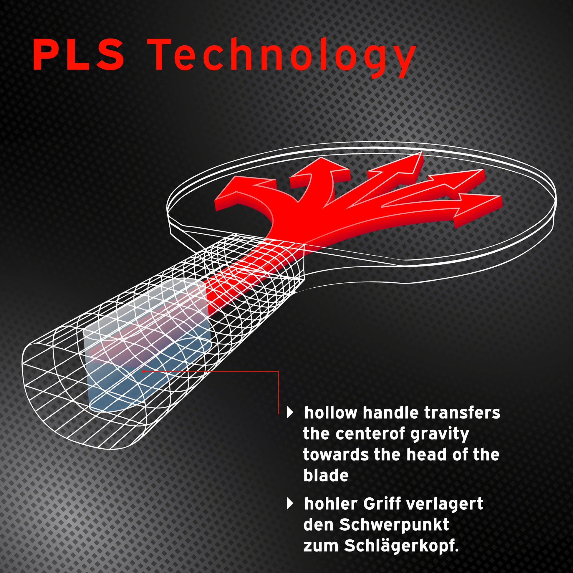 AVS grip dampening, PLS hollow grip system, Ergo-Handle, concave grip shape, ITTF approved Schildkröt Champion rubber 2.0mm sponge, FSC wood, Attack player type, in 4c box for better POS presentation, including free racket cover with a retail value of €9.99.