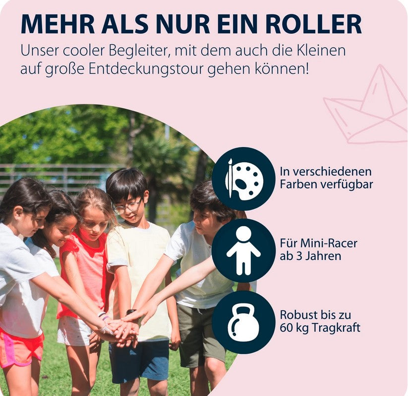 Our newest addition to the BigWheel® family is specifically designed for cruisers ages 3 and up. Ergonomically shaped handlebars and reinforced handlebar ends provide the necessary grip for little hands. The non-slip footrest also ensures a good foothold. And when it gets dark, reflectors on the brakes and tires help improve visibility. The Advanced Junior not only offers practical features and a cool design. Thanks to its sophisticated geometry, it's ideal for balance training for toddlers.