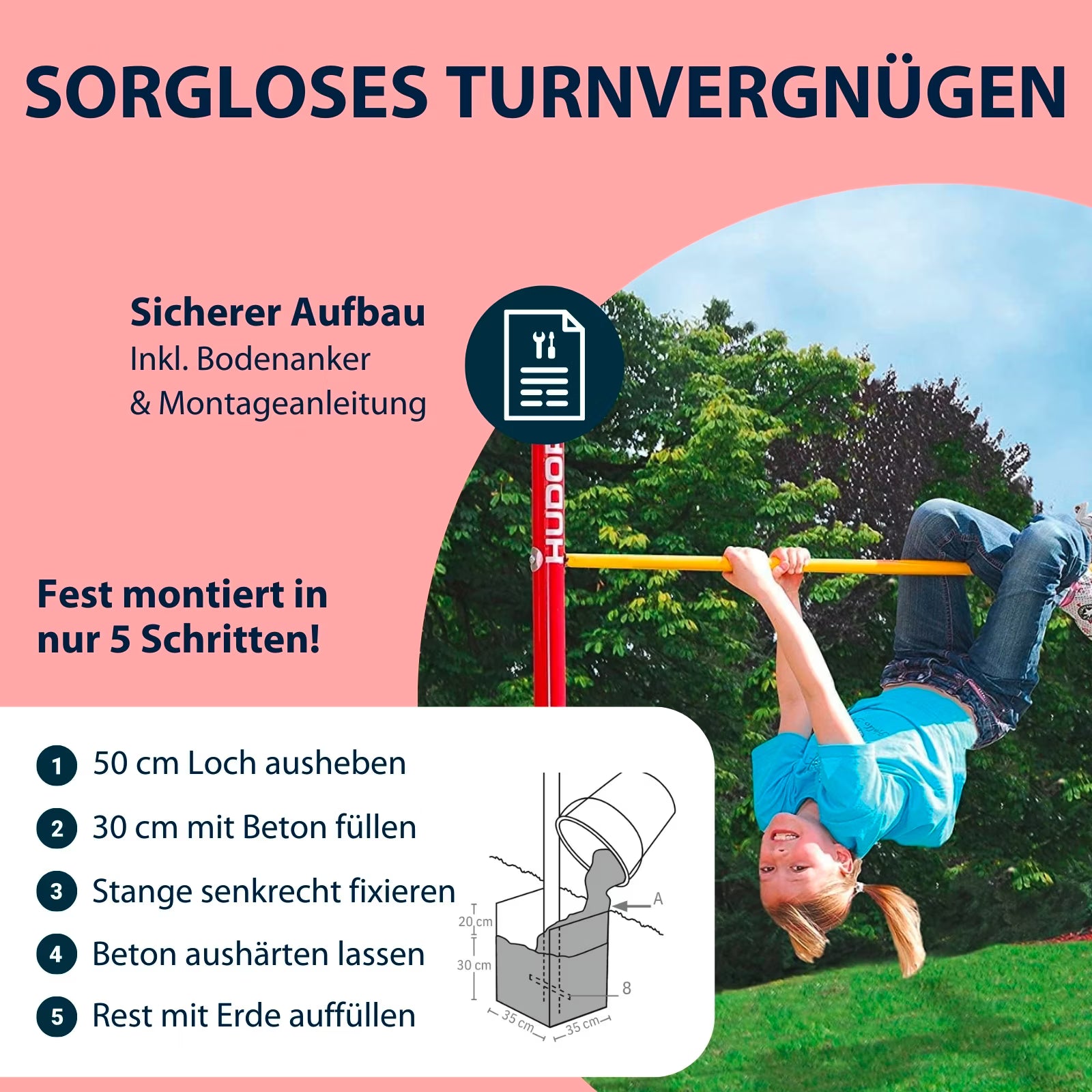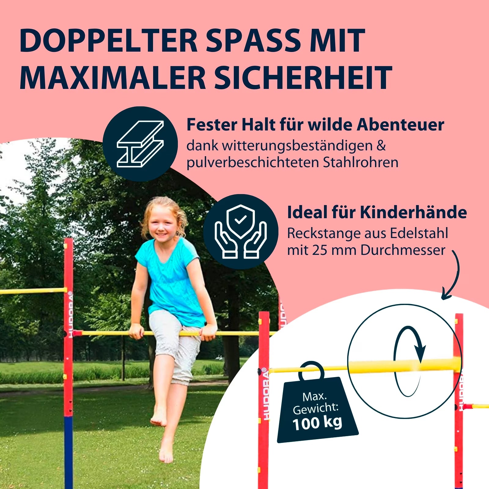 With the Fabian double gymnastics bar set from HUDORA you can train and play exuberantly on the gymnastics bar in the garden.