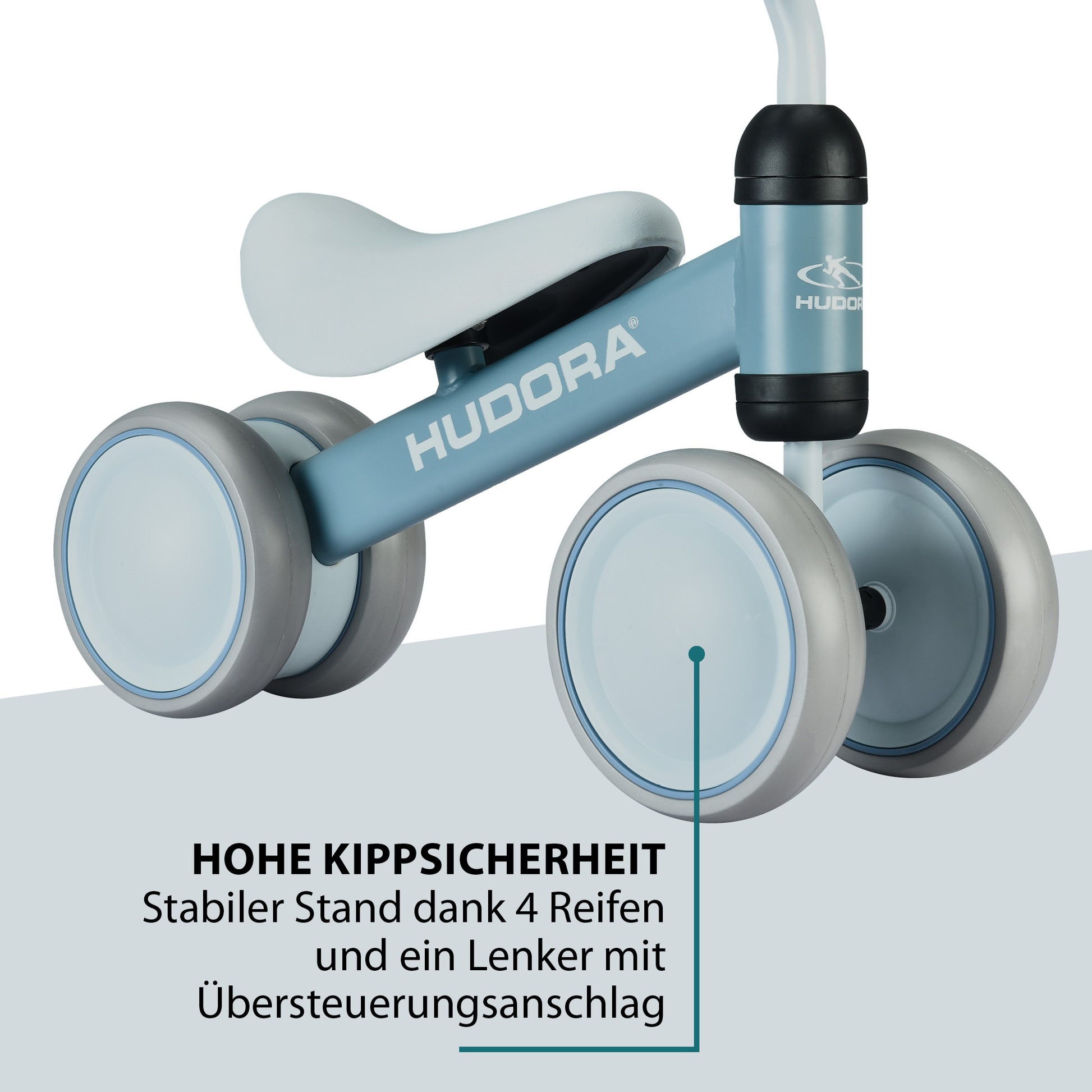 The brand-new Mini balance bike is perfect for those first adventures on two wheels – suitable for speedy little ones from around 12 months. Riding a scooter is not only great fun for the littlest ones, but also excellent preparation for later cycling. To ensure that these little speedsters and heroes can whizz around safely, the handlebars are padded with foam. This "crumple zone" can help mitigate the consequences of falls. The oversteer stop also promises very high tipping stability, reducing the risk of the handlebars turning sideways during energetic maneuvers. And even little hipsters know: Even a balance bike has to fit their lifestyle. That's why the HUDORA Mini balance bike comes in a minimalist design and is completely without frills – absolutely award-winning! Whether indoors or outdoors: With the mini balance bike, scooter newbies are always safe and fast on the go and can hardly wait to zoom off with grandma and grandpa on their next outing. Mini balance bike for the little ones