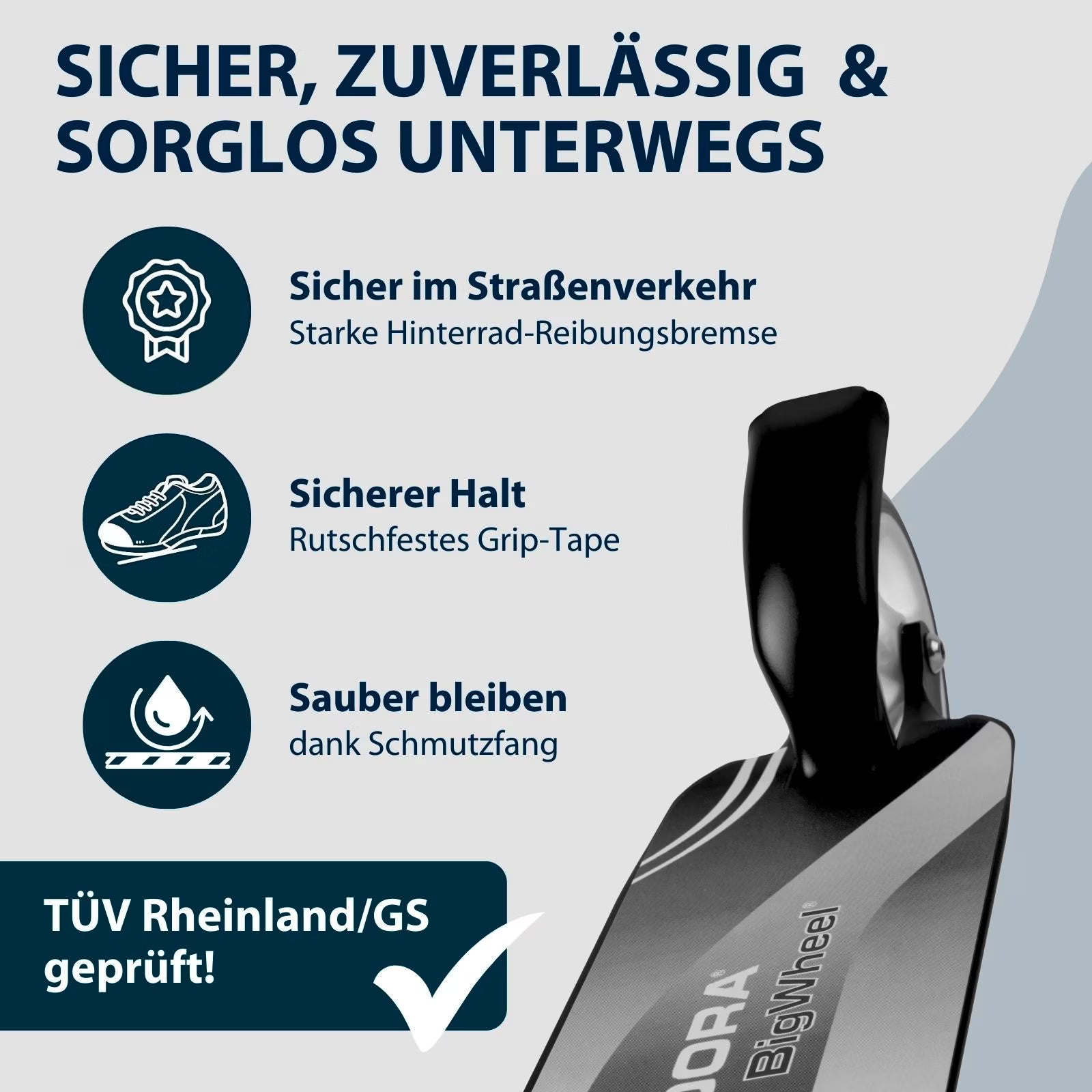 Big tires for little people? Of course! The new Little BigWheel® is the youngest of the BigWheel® scooters and is suitable for children from 3 years old. Thanks to the adjustable handlebar height from 68 to 74 cm, the scooter grows with its little riders. Because it folds very compactly, it fits neatly in any trunk – or in mom or dad's hand when you need to take a break from the scooter on the go. And when it's time to head out on the Little BigWheel® after a visit to the playground, the 180 mm wheels not only ensure smooth running but also speed for the little scooter fans. Despite its compact size, it can support up to 100 kg – so robust, safe, and fast, riding a scooter is great fun even for the littlest ones!