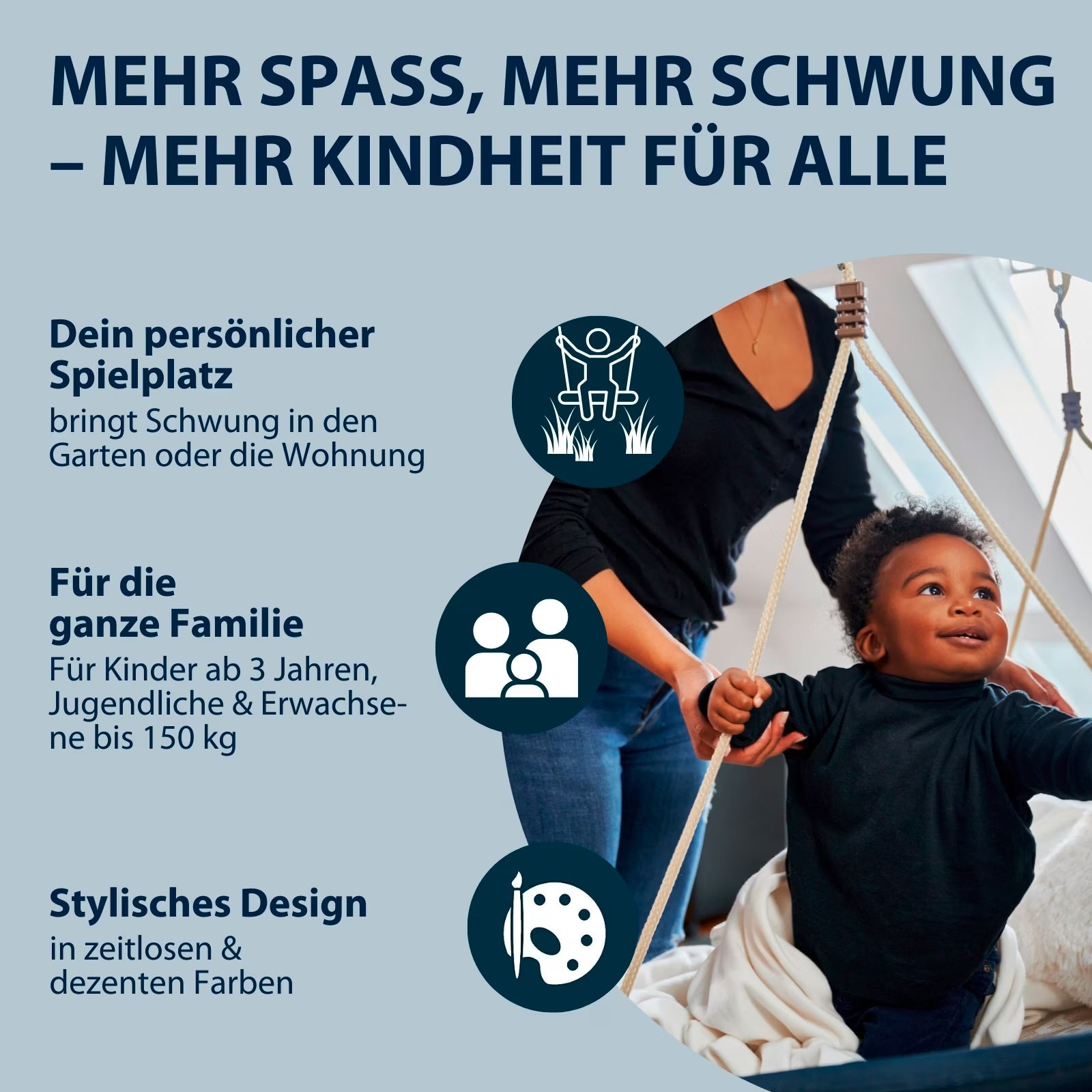 Die kann sich sehen lassen! Die neue Nestschaukel in runder Form bietet auf 90 cm Durchmesser nicht nur bequemen Schaukelspaß, sondern echte Eyecatcher-Qualitäten. Die Nestfläche in melierter Optik und die farblich darauf abgestimmte Randabdeckung in den Tönen midnight, amber und sand passen in jedes trendbewusste Gartendesign.