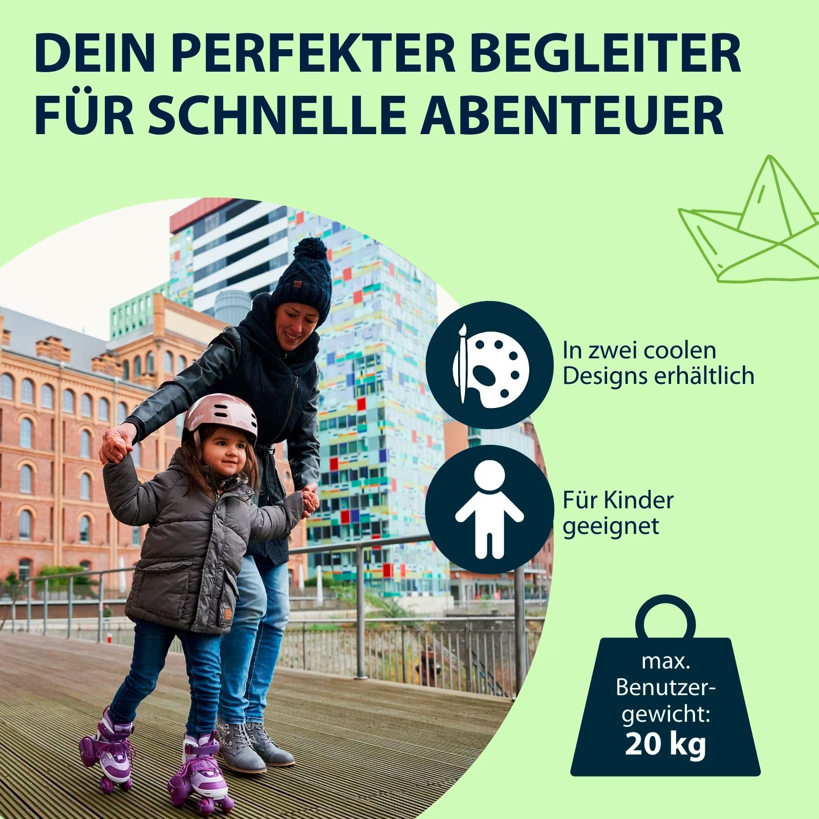 The extra-large rear wheels, measuring 80 x 20 millimeters in diameter, along with the smaller front wheels (40 x 18 mm), ensure stability. They're also eye-catching and cheerfully pop, just like the colorful roller skate design, which is sure to delight children. A desire for outdoor exercise is guaranteed.