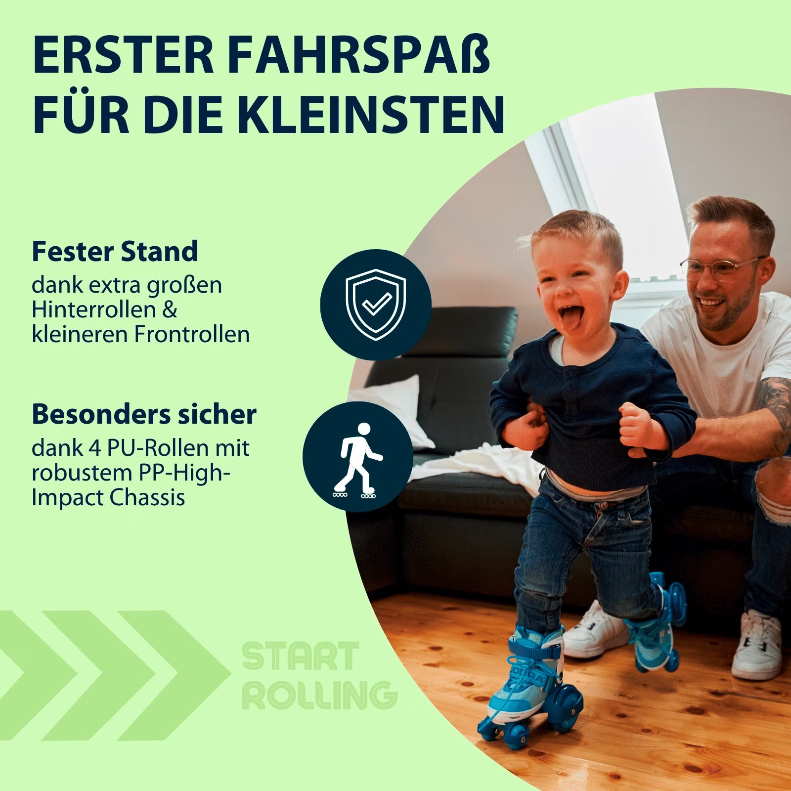 The adjustable My First Quad children's roller skates make first roller skating easy and help even the smallest skaters achieve quick success.