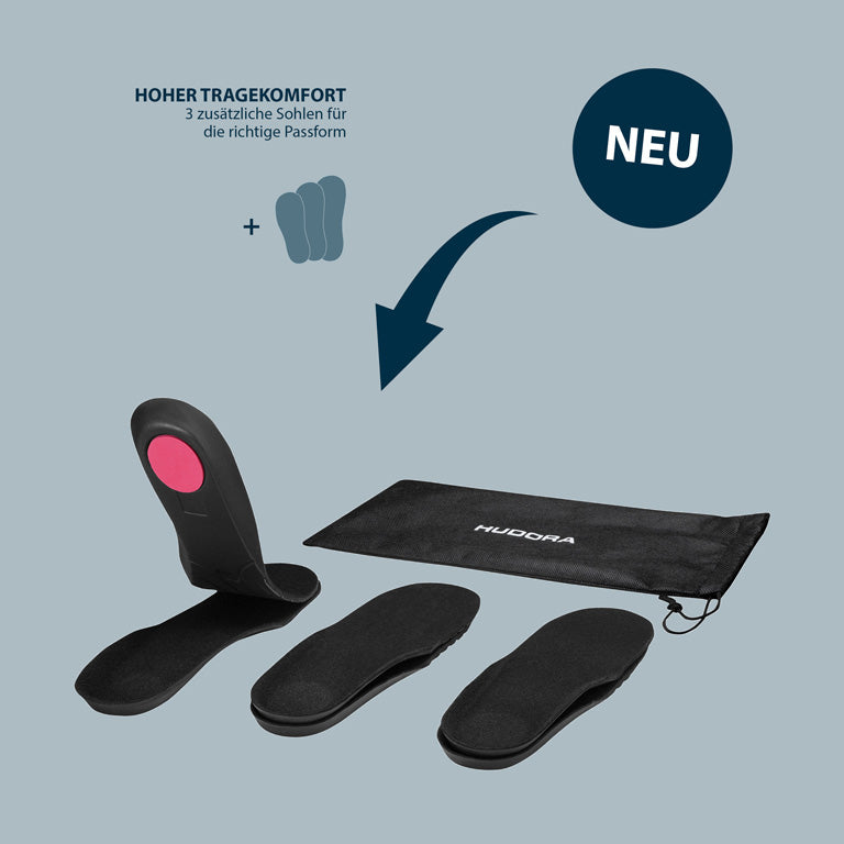 The HUDORA roller skates, with their sporty canvas lace-up look, grow with your child over four sizes. As befits a perfectly tailored sports shoe, these semi-soft roller skates are reinforced where the foot needs special protection: at the heel and ankle. A toe cap provides additional protection and durability for the adjustable shoe. When smooth and fast action is required, these roller skates offer just the right amount of flexibility. ABEC 3 ball bearings ensure the right amount of airflow, perfect for beginners. The sporty PU-molded high-rebound wheels are fast and extremely durable. The 60 x 37 mm wheel size is perfect for street surfaces. Thanks to the power strap, TPE cuff, and push-lock buckle with ratchet strap, the roller skates are quick to put on and optimally adapted to the anatomy of the foot.