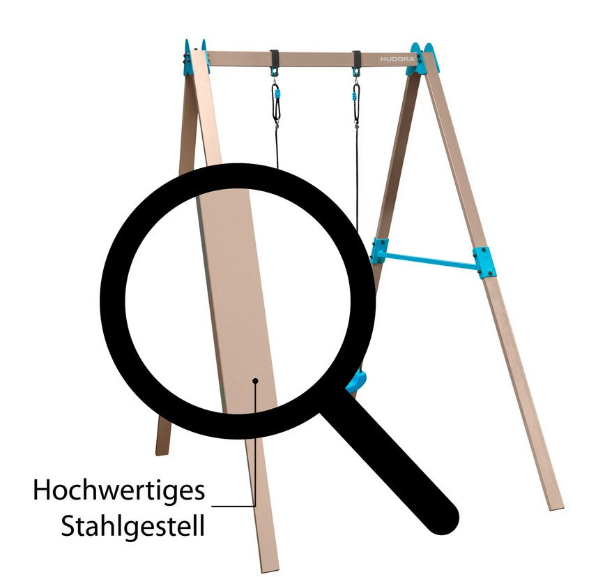 OUR MATERIAL TIP: The square frames made of galvanized, powder-coated steel not only look high-quality, they also ensure exceptional weather resistance. This eliminates the need for annual painting of wooden beams and ensures long-lasting swinging fun with the same feel, safety, and quality.