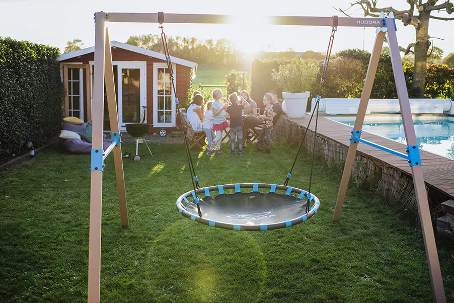 Even the smallest children love the steady rocking motion. That's why the Nest add-on module is a favorite place for babies to relax, dream, and sleep. When the nest swing time is over, a second plank swing can easily be attached alongside the one included in the base module. The necessary suspension and a second swing are available as accessories.