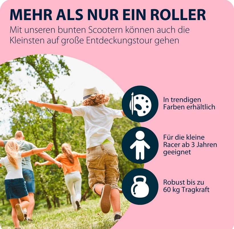 The new scooter is a size smaller than the Up 200. Designed specifically for kids ages 3 and up, it's a compelling entry-level model that optimally promotes the development of balance on two wheels. And thanks to the height-adjustable handlebars, it also grows with the child. Safety is a top priority with the Up 145. That's why the scooter offers plenty of room for a secure footing with a generous, non-slip footrest. The child-friendly rubber grips also ensure a firm grip at all times. Available in three modern versions.