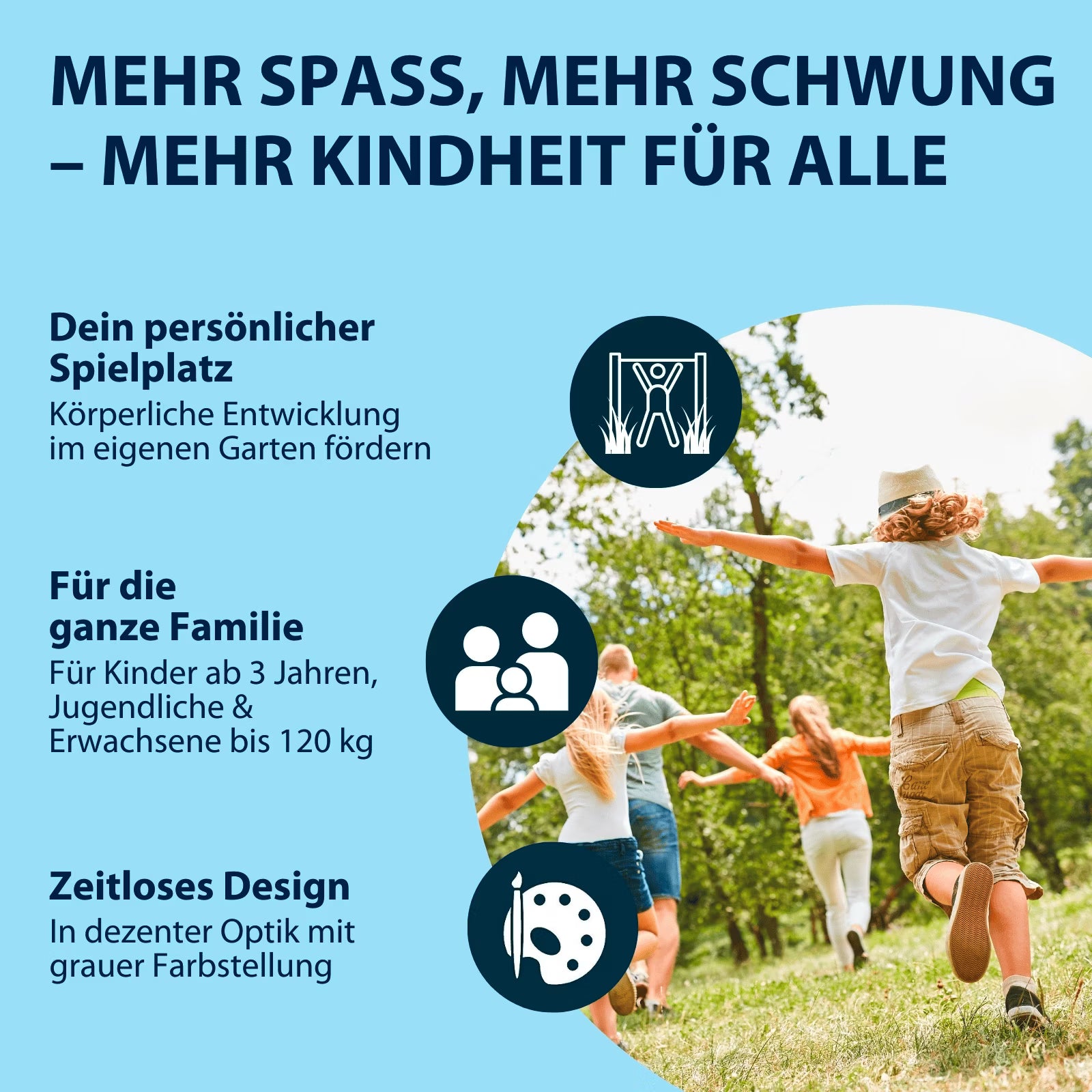 Wheelchair swing or mill turn? The Vario horizontal bar is the perfect piece of gymnastics equipment for increasing the flexibility of boys and girls. Thanks to the pre-drilled holes, the height of the bar can be adjusted to seven different heights from 72 to 170 cm, making it ideal for children ages 6 to 12. The 25 mm thick colored stainless steel bar and the 50 x 50 mm square frame make the bar a high-quality and very stable piece of gymnastics equipment. The Vario horizontal bar is suitable for outdoor installation and, thanks to its compact dimensions, fits even in small gardens.
