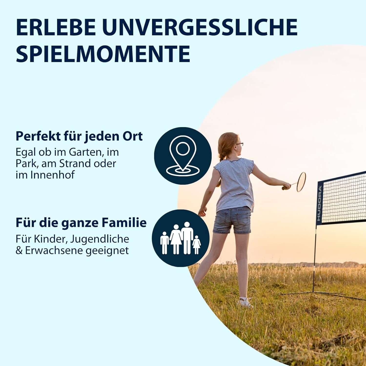 - A TRUE ALL-ROUNDER - Our versatile multi-purpose net is ideal for tennis and badminton, as well as for games in the courtyard or park. At the lowest adjustable level, the net can be used just for fun.