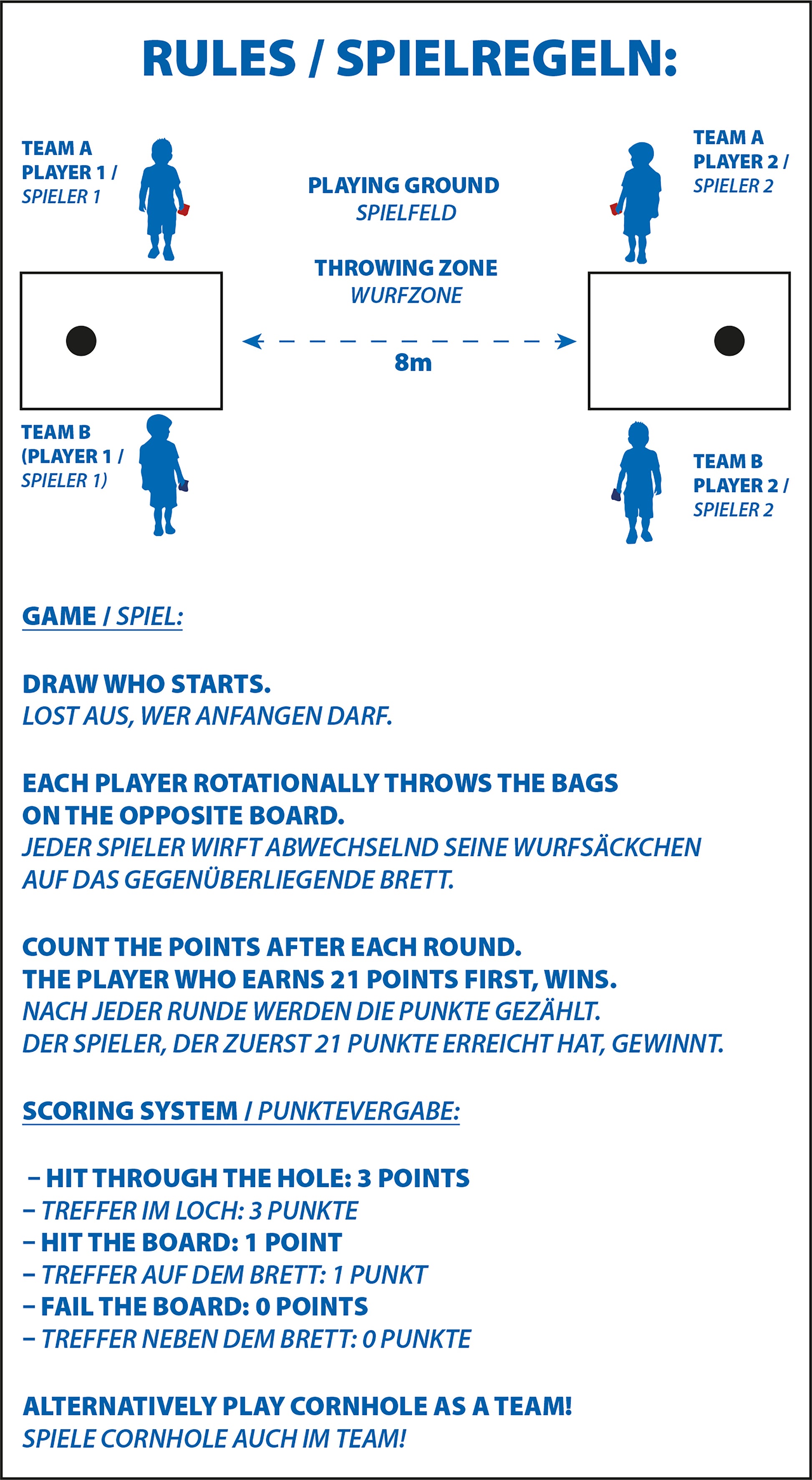 Cult outdoor game – The popular cornhole game from the USA provides action, fun and competition at family gatherings, barbecues or on vacation – ideal for 2-4 players outdoors.