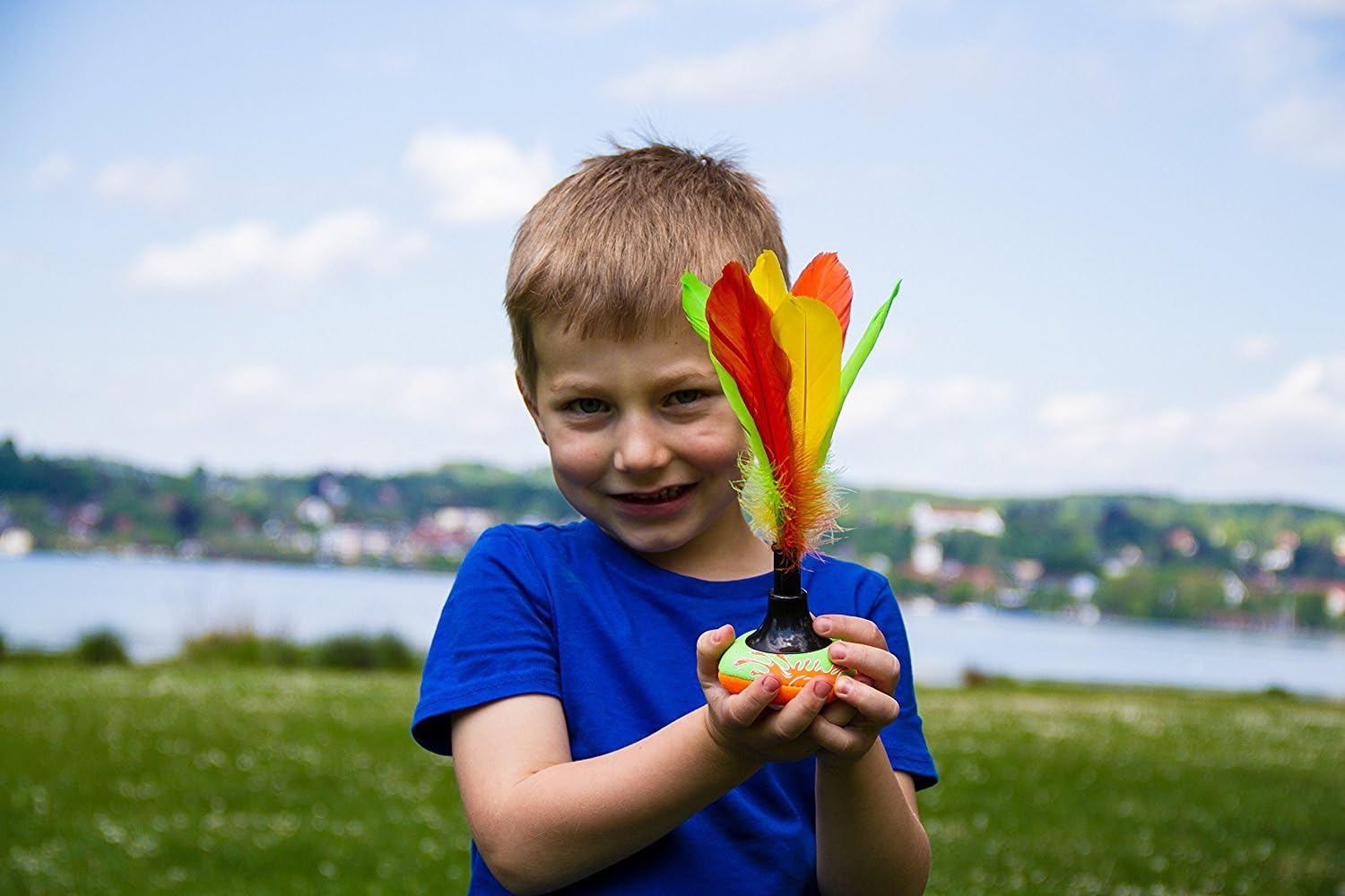 The trendy classic Peteca / hand shuttlecock / Indiaca from South America, new with a soft and non-slip neoprene cover, trendy design, securely packaged in individual blisters, so even the feathers arrive safely. This game, which is particularly popular in our latitudes, has enjoyed great popularity for years. Ideal for hand-eye coordination and can be played with the whole family or group. Can also be played over a badminton or beach volleyball net. The shuttlecock is hit to a teammate with the palm of the hand (or sometimes the foot) and should not touch the ground. No additional accessories required. Height approx. 24 cm, weight 25 grams. About Schildkröt: The over 100-year-old German brand Schildkröt is considered the inventor of the table tennis ball. Today, in addition to table tennis, Schildkröt also offers a very extensive fun sports, roller sports, and fitness collection and is considered the market leader in certain areas. All product development takes place in Germany. The global production facilities are strictly monitored and meet the highest social standards.