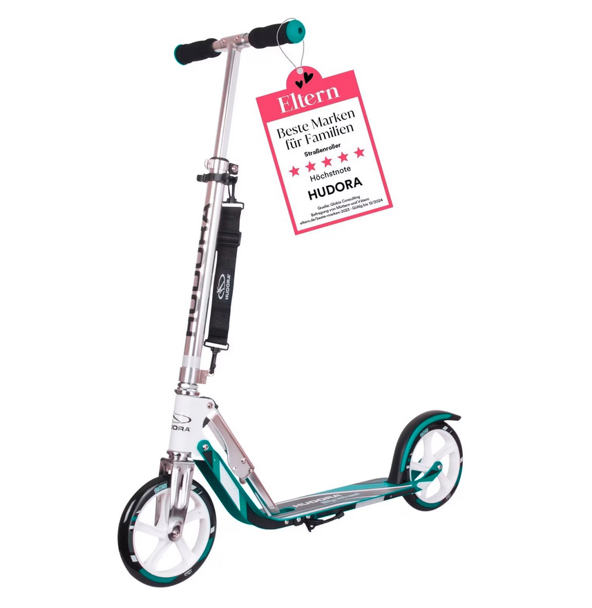 Die schlanken Rollen erlauben hohe Geschwindigkeiten und viel Fahrspaß. Roller waren früher nur etwas für Kinder. Die Zeiten haben sich geändert und heute fahren auch viele ältere Mädchen und Jungs, Jugendliche und Erwachsene Scooter. Ein rasch zusammenklappbarer Roller ist einfach perfekt für den alltäglichen Arbeits- oder Schulweg. Der HUDORA BigWheel ist mit seinen flinken Reifen genau der richtige Roller für Schule, Arbeit und Freizeit. Dieser Aluminium-Roller hat extralange Schmutzfänge sowohl am Vorderrad als auch am Hinterrad. Sicherheitshandgriffe mit Aufprallschutz, ein Ständer, eine Hinterradreibungsbremse und Reflektoren an Lenker und Deck sind zusätzliche Sicherheitsfeatures. Der Lenker ist höhenjustierbar und passt sich so seinen Fahrern an. Den BigWheel gibt es in vielen verschiedenen Farbkombinationen. Durch das hohe maximale Benutzergewicht von 100 kg ist dieser Roller auch für sportliche Erwachsene geeignet.