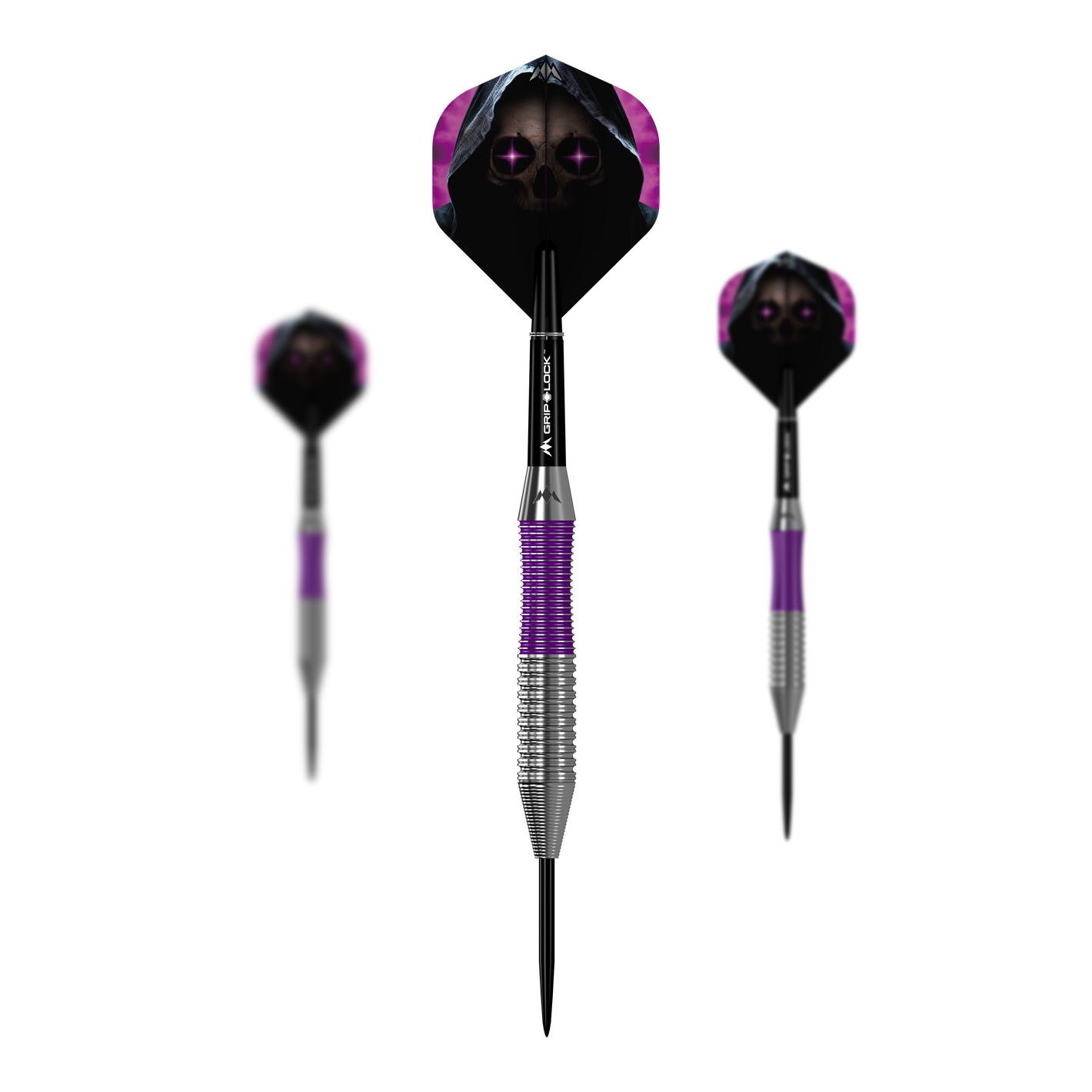 Hebe dein Spiel auf ein neues Level mit den Mission Phantom Darts. Gefertigt aus Messing und mit einer silbernen Beschichtung versehen, bieten diese Darts eine zentrale Scallop-Ringgrip-Sektion, die durch lila lackierte Ringe akzentuiert wird. Der glatte hintere Bereich des Barrels trägt das lasergravierte Mission-Logo, während der vordere Bereich mit einem Ringgrip ausgestattet ist, der sich sanft in eine verjüngte Nase mit feinem Ringgrip fortsetzt. Die Mission Phantom Darts vereinen Stil und Funktionalität für Spieler, die ihre Präzision verbessern möchten.